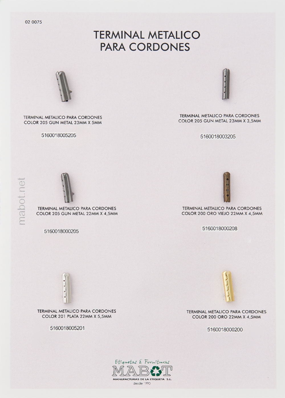 Terminal metálico para cordones en color plata, disponible en: 22mm x 5.5mm.