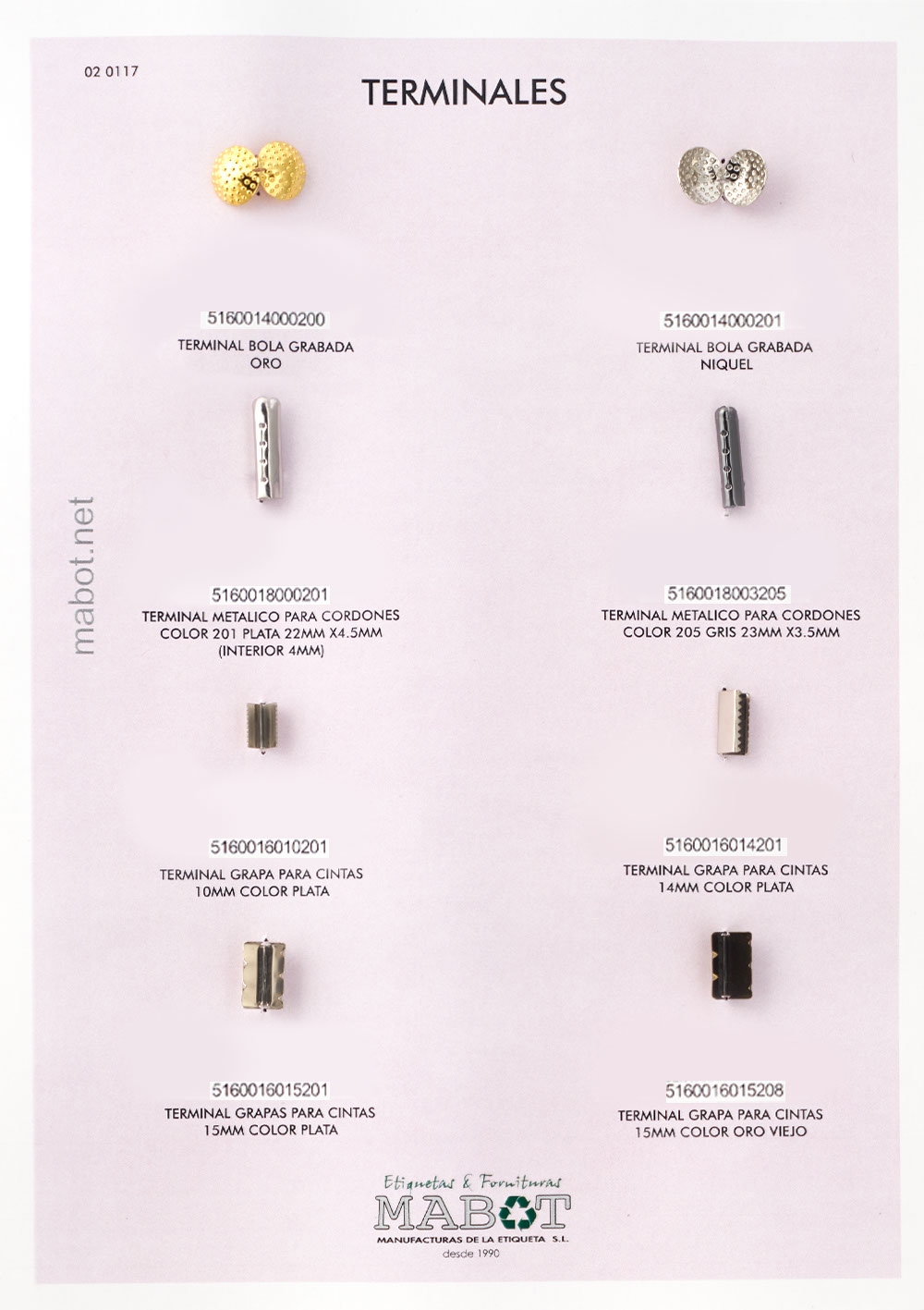 Terminal bola grabada, disponible en: oro, niquel.