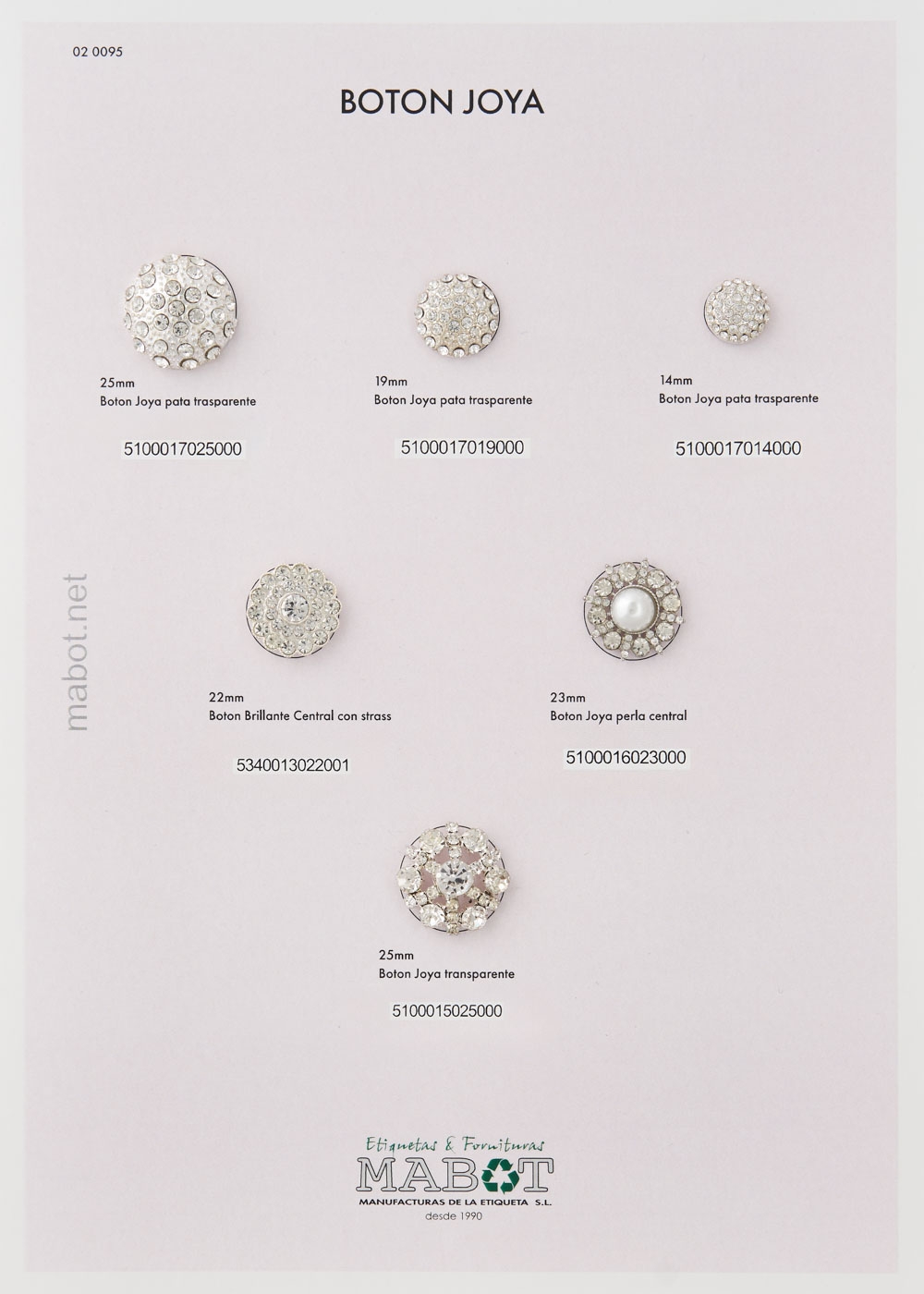 Botón joya perla central, disponible en: 23mm.