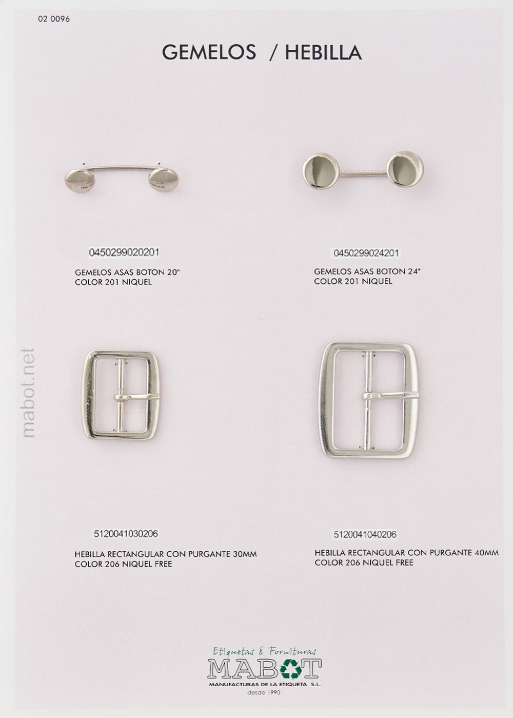 Gemelos asas color níquel, disponible en: botón 20", botón 24".