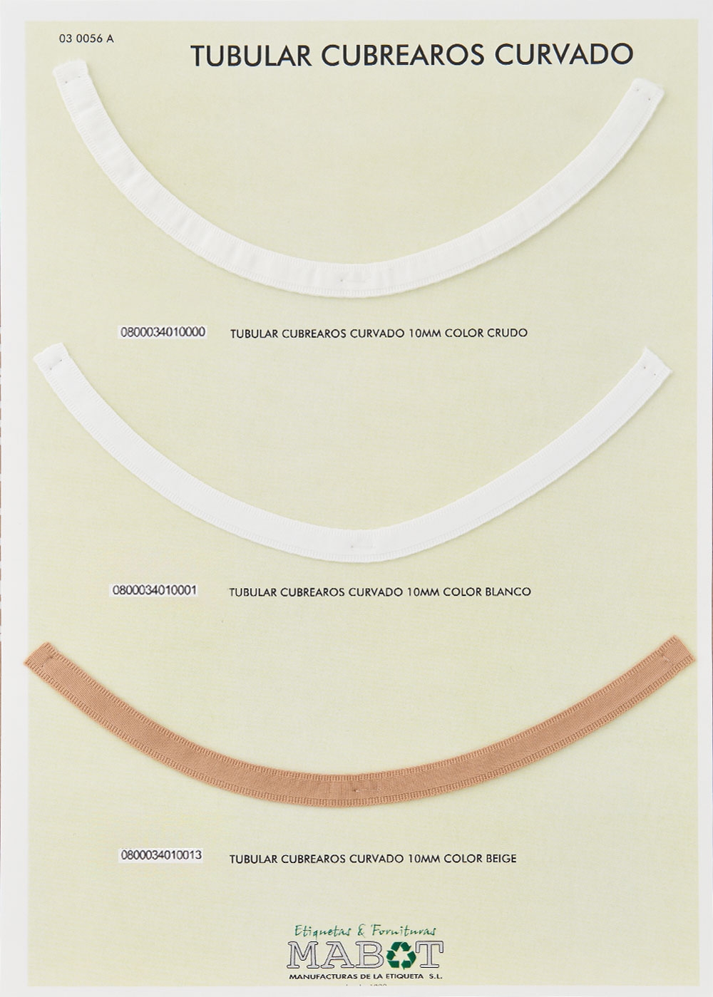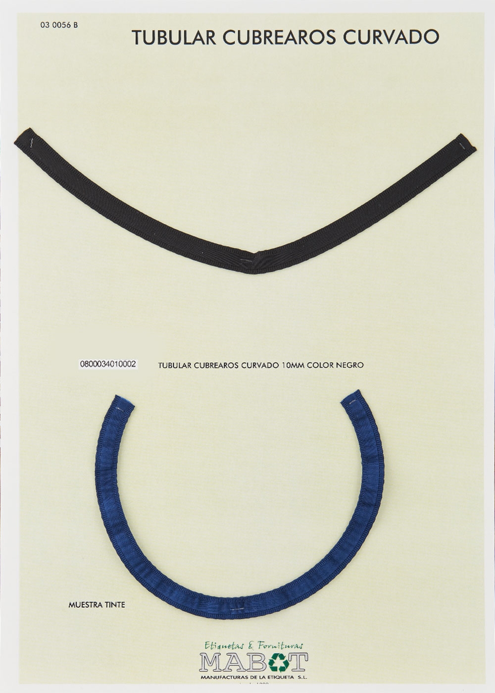 Tubular cubrearos curvado 10mm, disponible en: blanco, crudo, beige, negro, con opción para tinte.