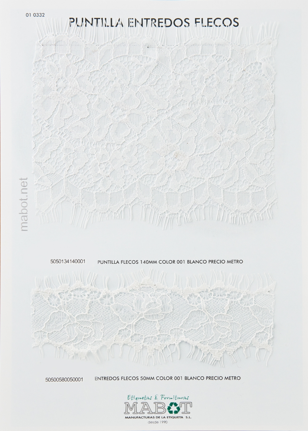 Entredos flecos 50mm, disponible en: blanco.