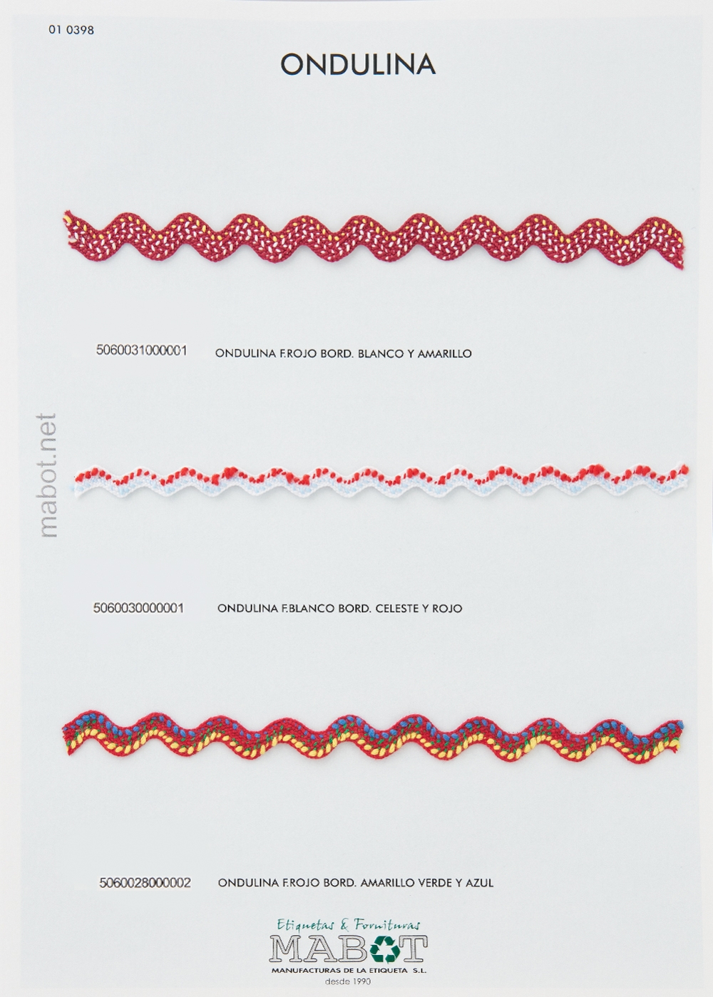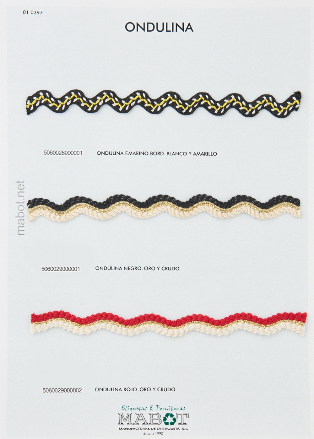 Ondulina fantasía, disponible en las siguientes combinaciones de colores: