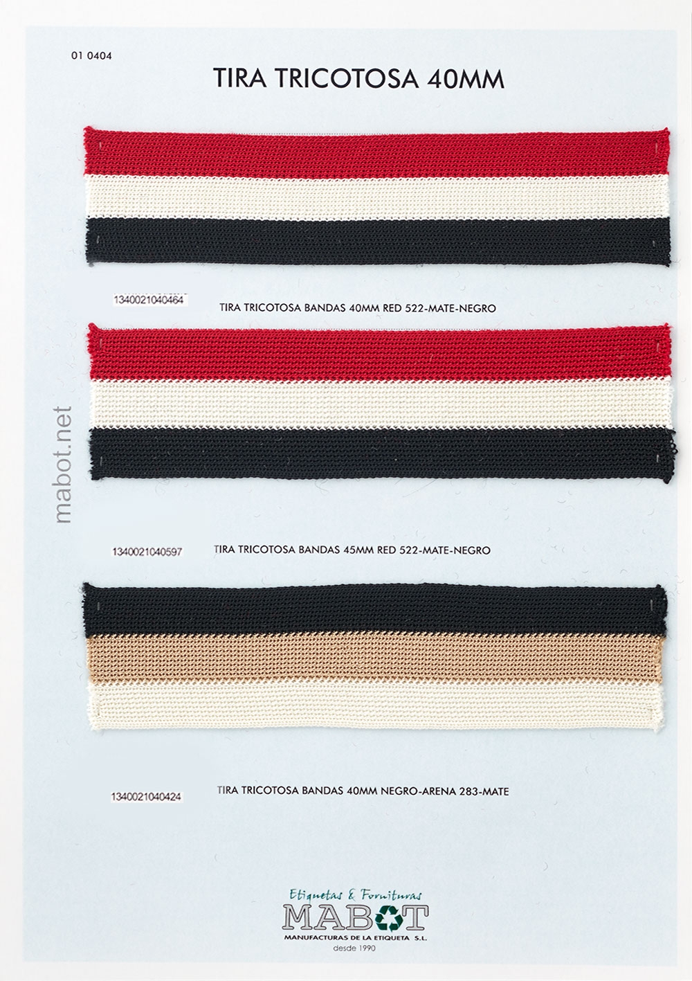 Tira tricotosa bandas 40mm, disponible en: red 522-mate-negro, negro-arena 283-mate.