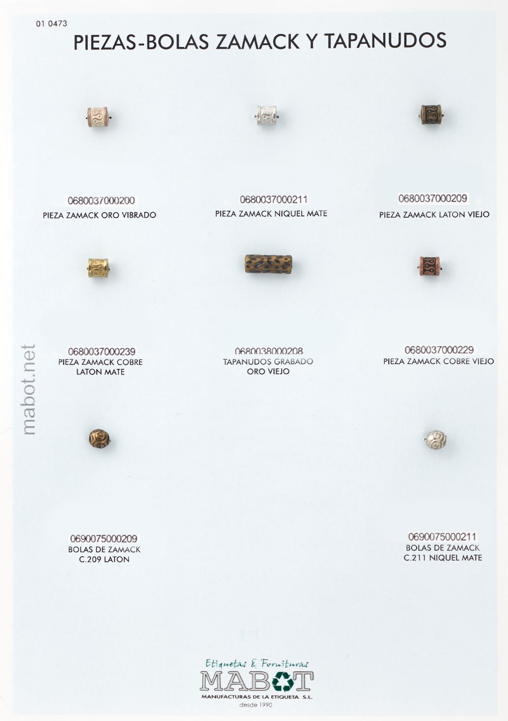 Bolas de zamack, disponible en: latón, niquel mate.