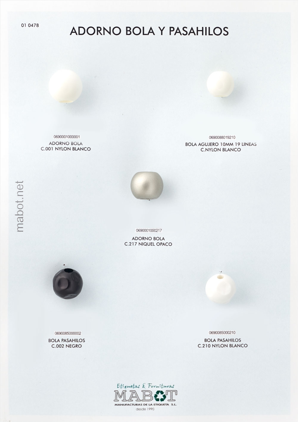 Adorno bola disponible en: nylon blanco, niquel opaco.
