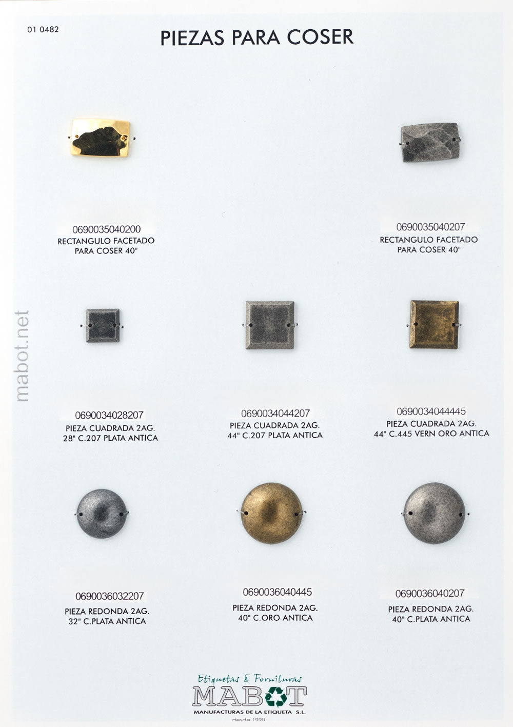 Pieza cuadrada 2ag. 44", disponible en: plata antica, vern oro antica.