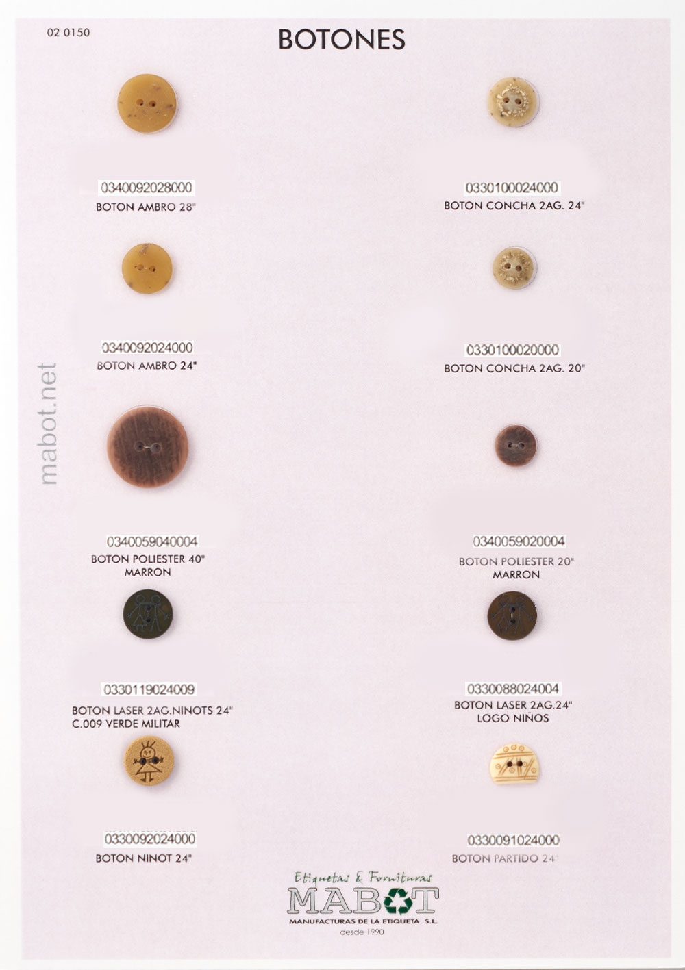 Botón concha 2 agujeros, disponible en: 24", 20".