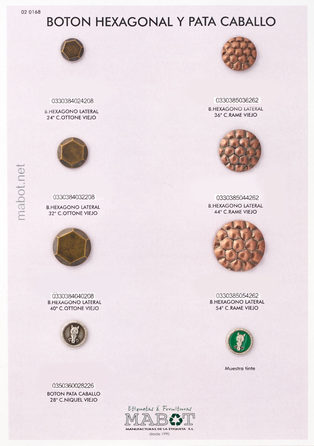 Botón hexagono lateral en rame viejo, en medidas: 36", 44", 54".