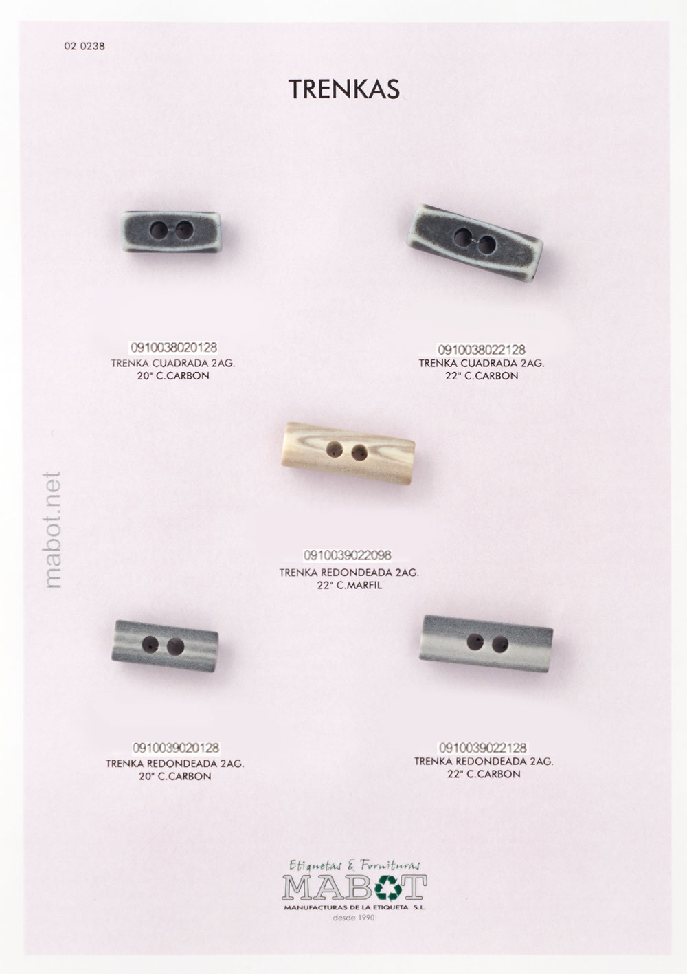 Trenka redondeada 2 agujeros 22" en color marfil.
