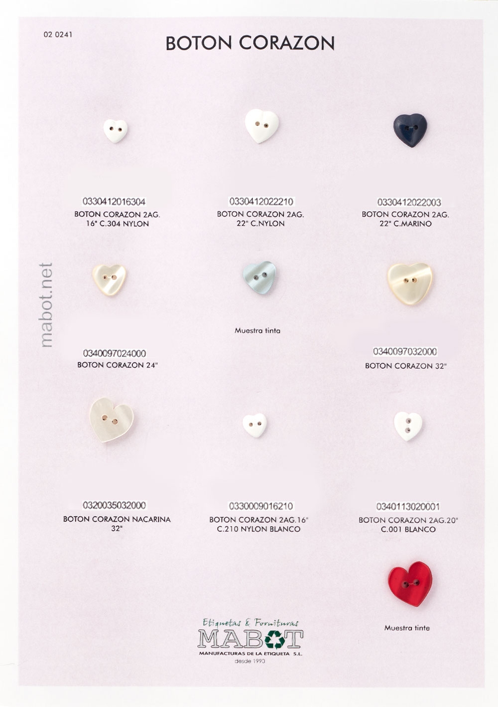 Botón corazón 2 agujeros nylon, en medidas: 16", 22".