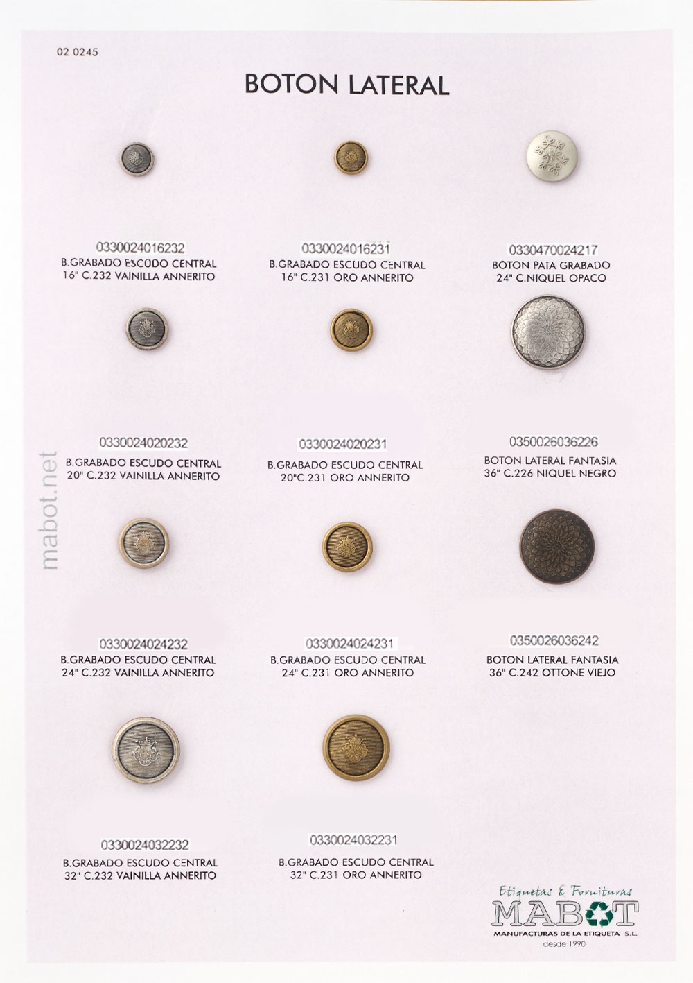 Botón grabado escudo central en color oro annerito, en medidas: 16", 20", 24", 32".