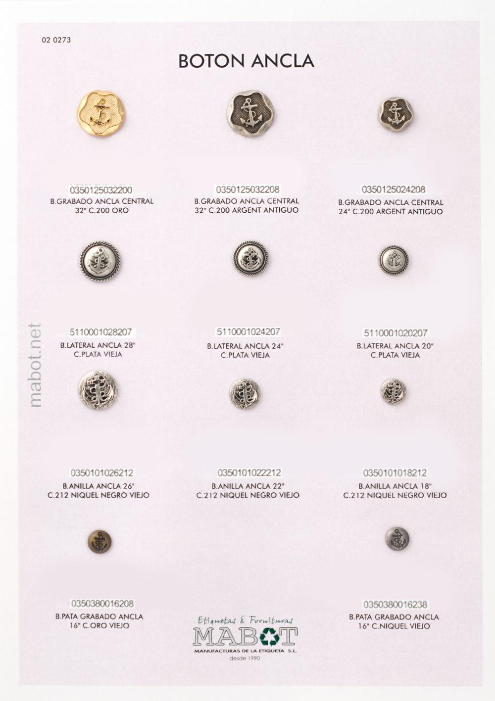 Botón pata grabado ancla 16", disponible en: oro viejo, niquel viejo.