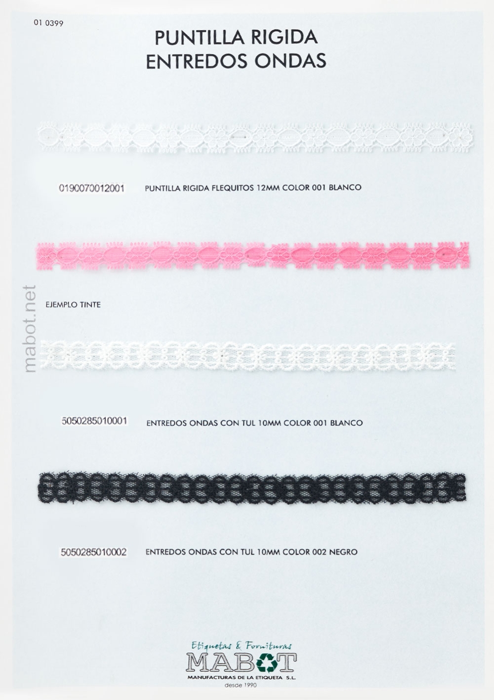Entredos ondas con tul 10mm, disponible en: blanco, negro.
