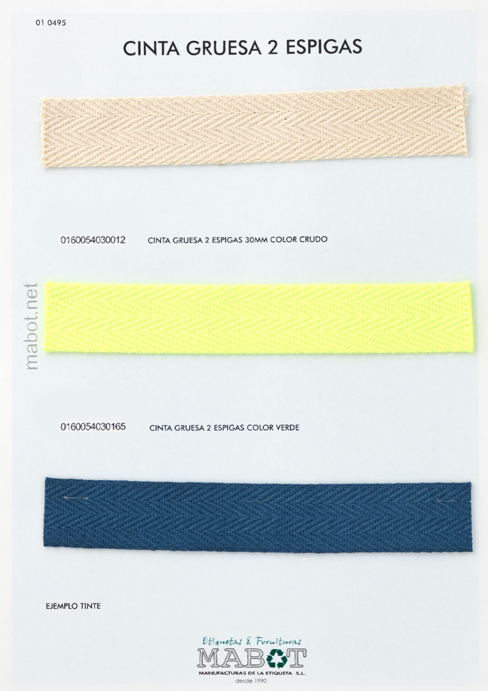 Cinta gruesa 2 espigas 30mm, diponible en: crudo, verde. -con opción a tinte.