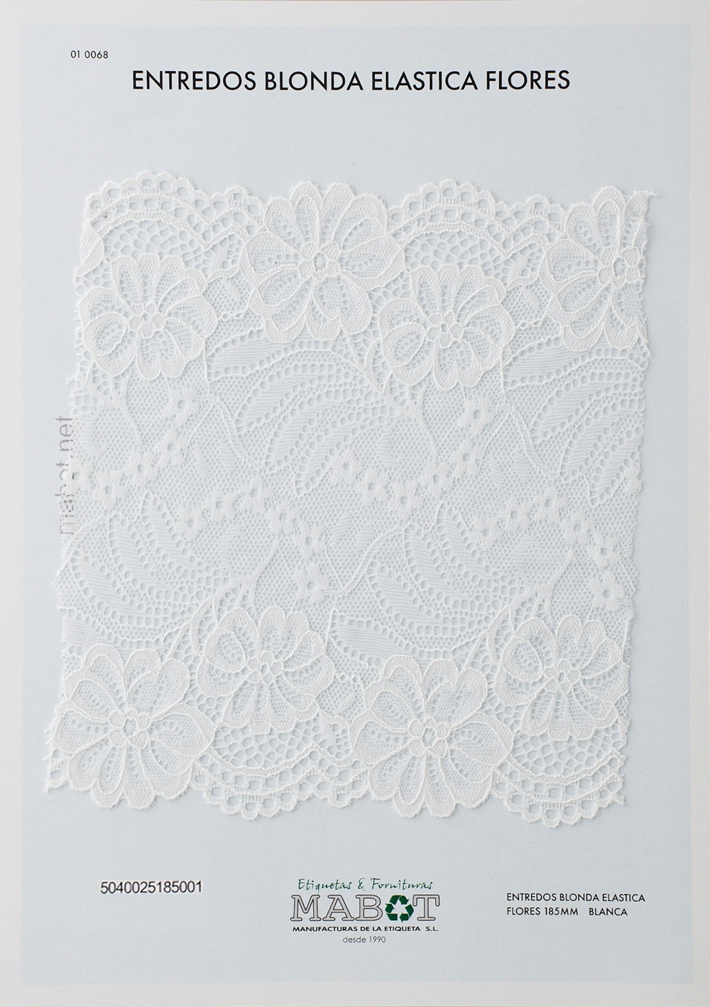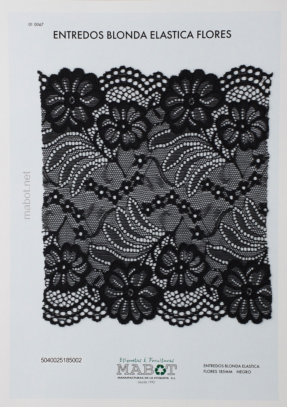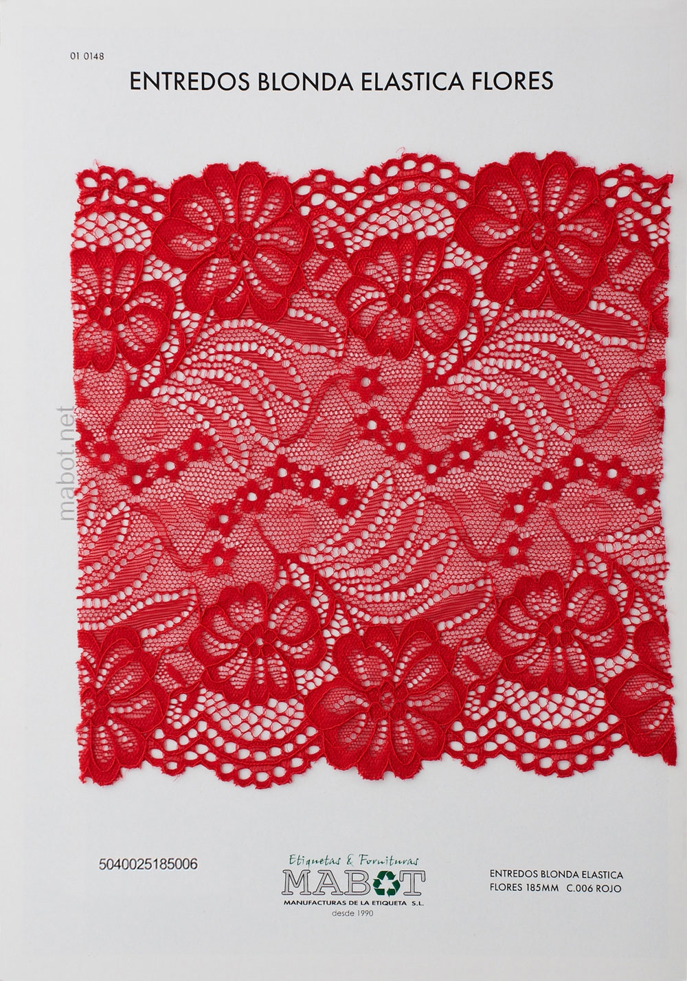 Puntilla, blonda elástica entredós, flores de 185mm, en negra y rojo.