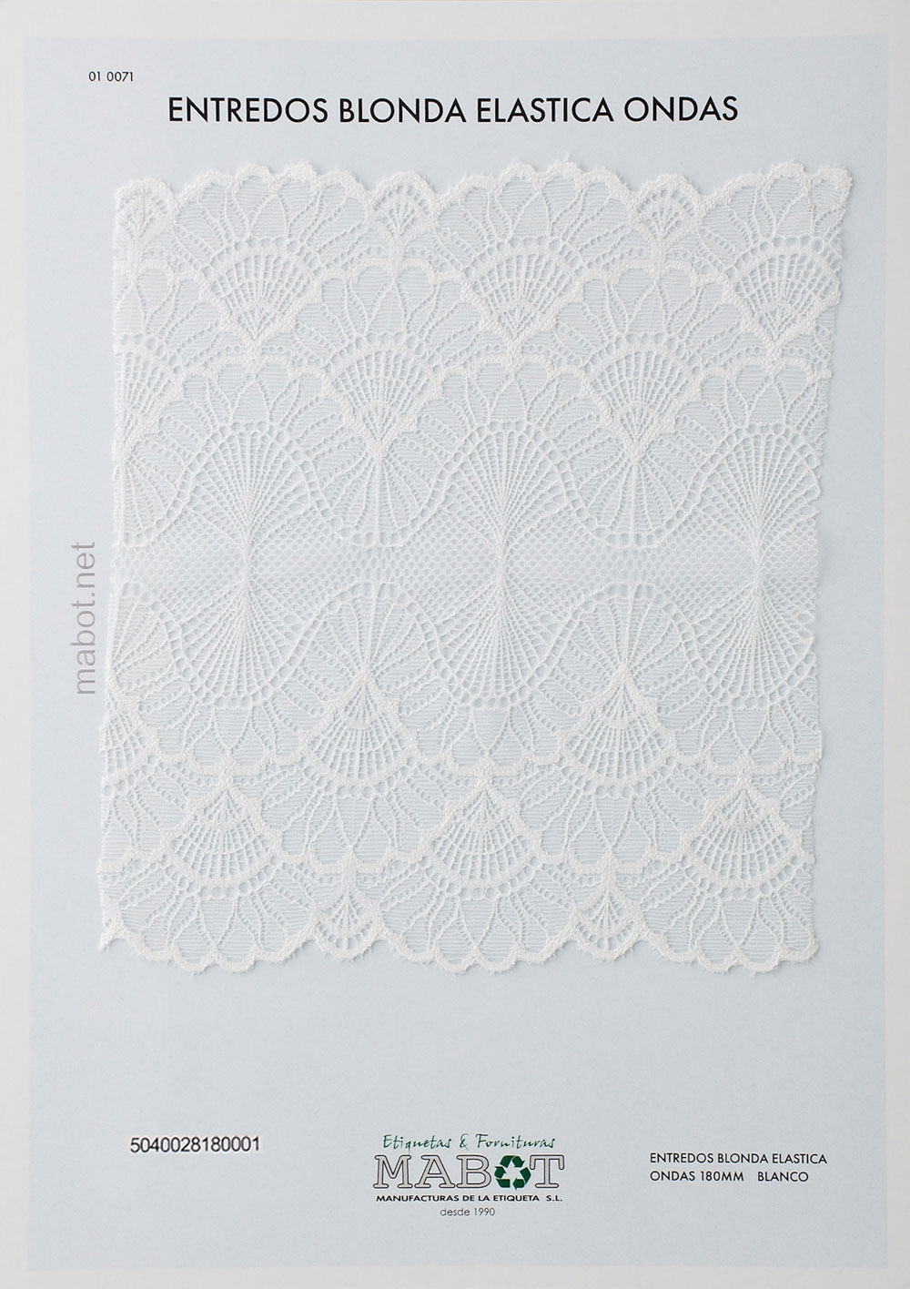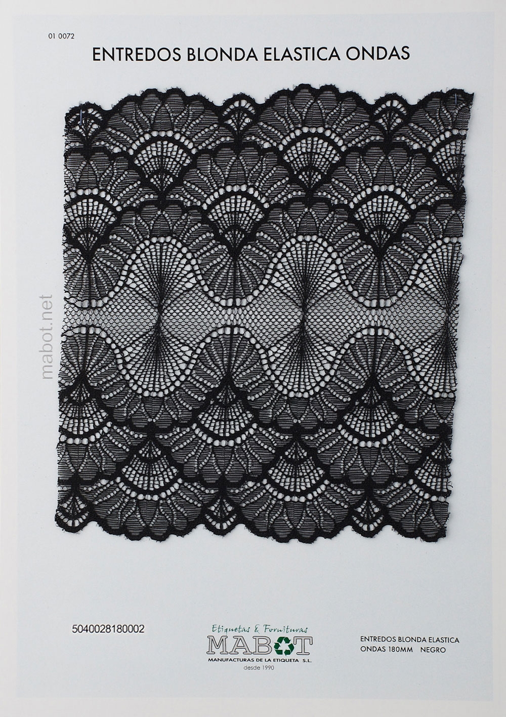 Puntilla, blonda elástica entredós, ondas de 180mm, en negra y blanca.