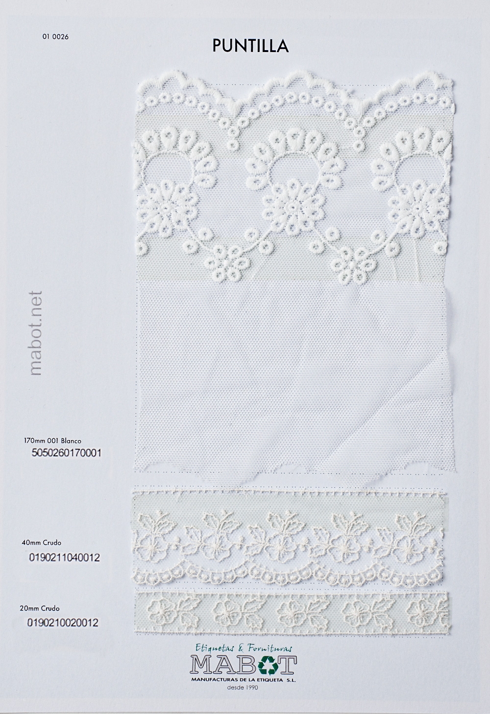Entredos bordado flores, en 20 y 40mm, crudo.
