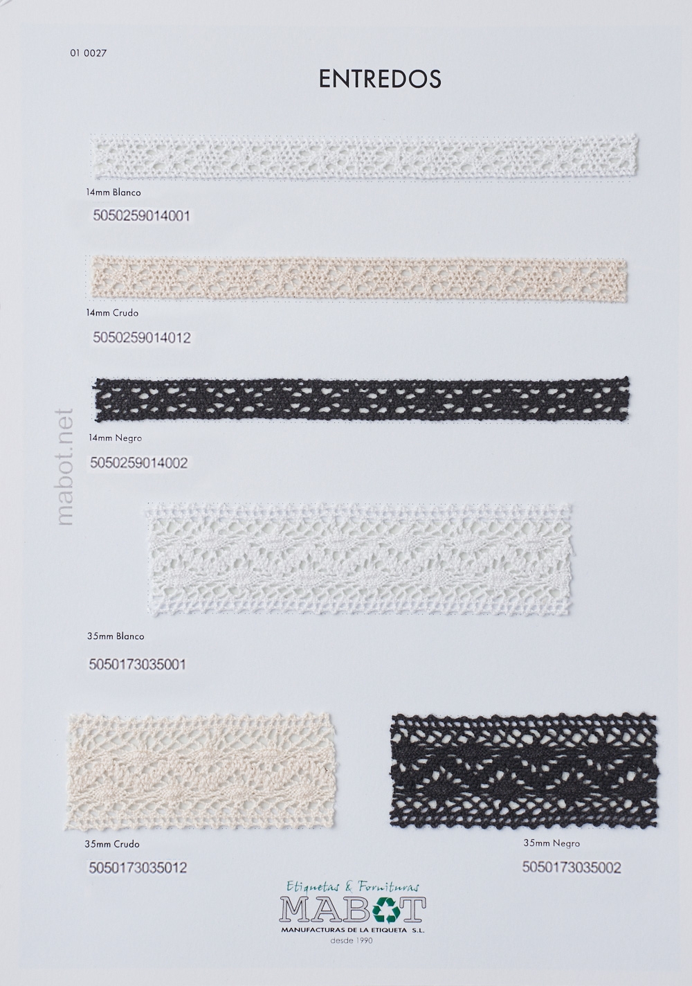 Entredós rígido de 14 y 35 mm, blanco crudo y negro.