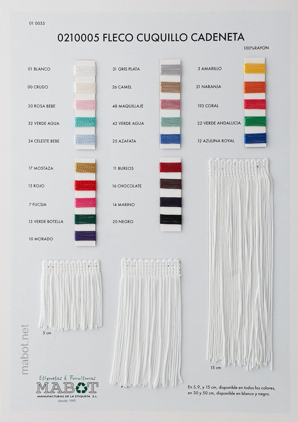 Fleco de cuquillo cadeneta, en 5, 9, 15 30 y 50 mm, disponible en diferentes colores.